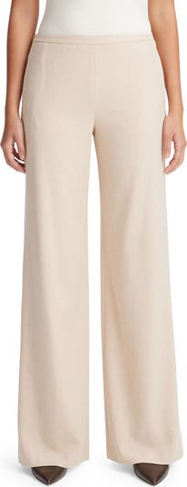 Brushed wool-enriched flannel lends cozy appeal and soft drape to wide-leg pants fashioned with a partially elastic waist for daylong comfort.