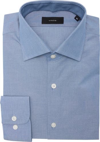 A smart spread collar frames a classic long-sleeve, button-front shirt woven from pure, breathable cotton for casual comfort.