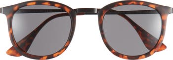 Warm tinted lenses softly block harsh light in these always-stylish sunglasses featuring a round-frame silhouette.