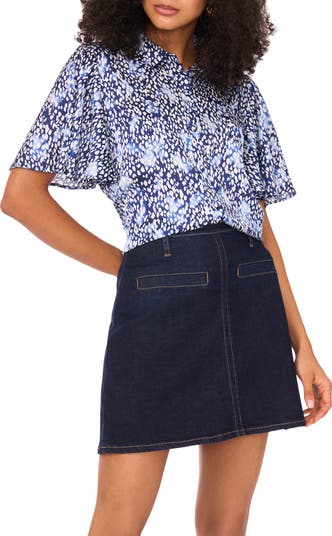 A mesmerizing print defines a lightweight button-up fixed with fluttering sleeves for extra charm points.