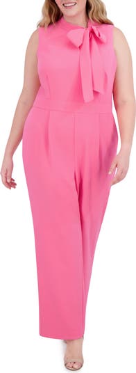 Brighten your day with this sleeveless stretch-crepe jumpsuit fashioned with a polished tie bow, subtle front pleats and handy side pockets.