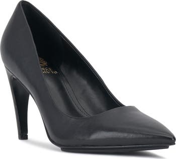A willowy heel balances the sharp pointy toe of this wardrobe-staple leather pump set on a flexible, slip-resistant rubber sole.