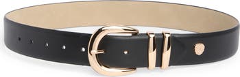 Highlight your silhouette with this faux-leather belt finished with a gleaming rounded buckle and double keepers.