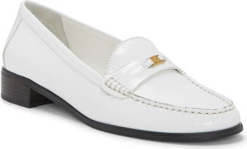 A goldtone bit glints atop the moc toe of this classic leather loafer.