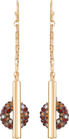 Layers of chain suspend elegant drops on these polished earrings that are adorned with crystals and gleaming in goldtone plate.