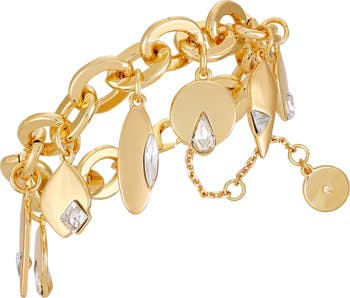 Show off dramatic shine with this chunky oval-chain bracelet suspending mixed charms with sparkly crystals.