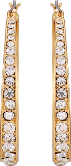 Update your earrings collection with these polished hoops that are gleaming with bezel-set crystals and warm goldtone plating.