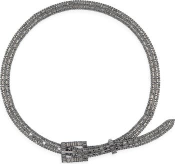 Bring shimmer and shine to casual or elevated looks with this belt crafted from mesh chain and covered in eye-catching crystals.