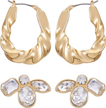 Refresh your stack with this stud and hoops set featuring shimmering crystals and a twisted texture to elevate your lobes.