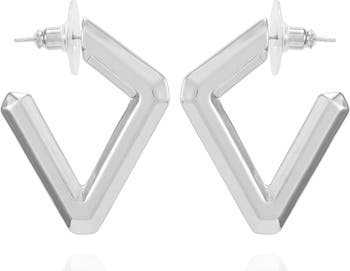 A unique open-diamond design defines these sculptural earrings that offer a contemporary twist on classic hoops.