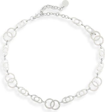 Crystal-encrusted double circle details create eye-catching shine on this chain linked belt that'll stylishly finish off your look.