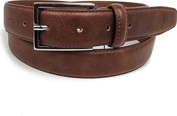 A polished square buckle secures this double-stitched leather belt that'll serve as a versatile essential in your wardrobe.
