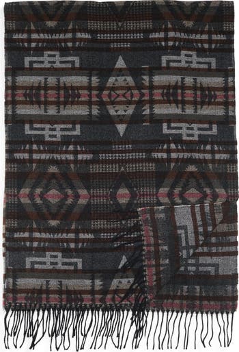 Chic and cozy, this feathersoft geometric jacquard wrap scarf is finished with fringe and ready to be your go-to layer when temperatures drop.