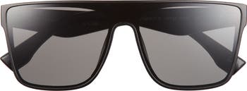 A rich texture and tonal branded define the wide temples that frame shield sunglasses that serve up futuristic swagger with each wear.