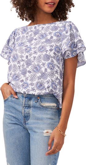 Fluttering with flouncy sleeves and covered in an elegant print, this dreamy top is easy to style up or down, depending upon your agenda.