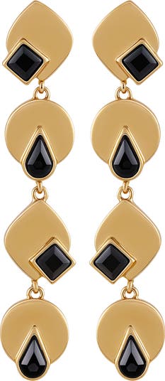 A geometric silhouette with crystal inlay brings a modern flourish to these gleaming drop earrings plated in a warm goldtone.