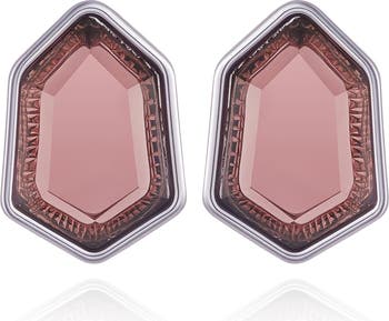 Geometric edges bring a bold appearance to polished stud earrings centered by a colorful, faceted stone.
