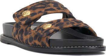 Step out in sporty-chic style with this two-strap slide sandal topped with polished hardware.
