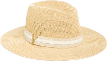 A grosgrain and PU band with a V accent detail a packable straw Panama hat that's perfect for your next vacation.