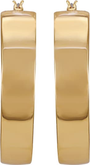 Sparkly pavé crystals trace the inner curves of these glamorous hoop earrings boasting a high-shine finish.