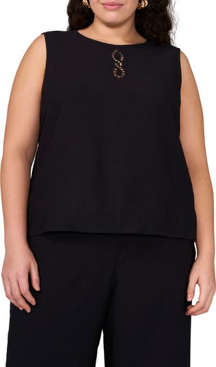 A lattice-inset design at the chest punctuates a summery, lightweight top delightfully detailed with a back keyhole and cut in a sleeveless silhouette.