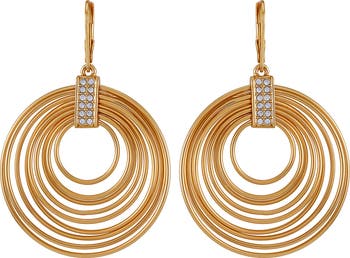 Interlocking circles, secured with a glittering pavé accent make up these drop earrings for a statement look.