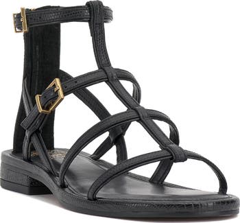 Punctuate your look with the contemporary-chic style of this strappy leather sandal designed with adjustable buckles for a perfect fit.