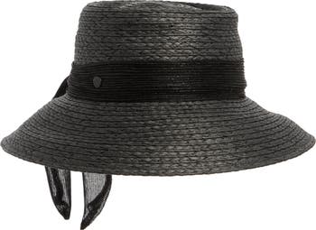 Shimmery threads and a glimmer-kissed hat band give sunny flair to this woven bucket hat.