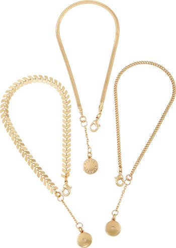 A mix of intricate chains adds versatile appeal to this set of 3 anklets set in a polished gold-tone plate.