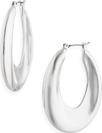 An elongated oval silhouette brings timeless elegance to these hoop earrings finished in a polished silvertone plate.