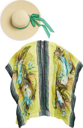 Your resort-ready look is incomplete without this charming set of a bow-adorned hat and vibrant topper that easily layers over any ensemble.