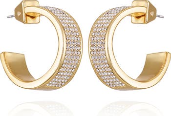 Pavé crystals lend shimmer and shine to C-shaped hoops that instantly refresh your jewelry collection with a modern flair.