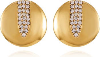Sparkly pavé crystals enrich these glamorous disc drop earrings boasting a polished finish for stunning shine.