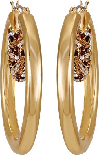 Bright, warm polish and a layered design elevate the look of everyday hoop earrings complete with faceted crystals for shimmer and shine.