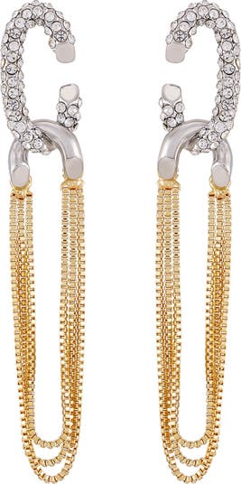 Pavé Crystal Two-Tone Chain Drop Hoop Earrings