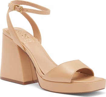 A slim ankle strap adds a picture-perfect flourish to this outfit-refining platform sandal elevated by a flared block heel.