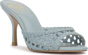 A woven open toe delivers a vacation-ready appeal to a versatile sandal balanced by a striking spike heel.