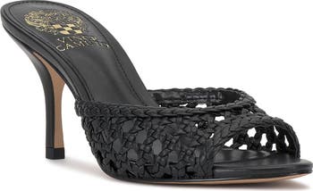 A woven open toe delivers a vacation-ready appeal to a versatile sandal balanced by a striking spike heel.