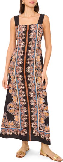 Ornate paisley swirls elevate a lightweight sleeveless maxi made with thick contrasting straps and finished with a smocked back for easy movement.