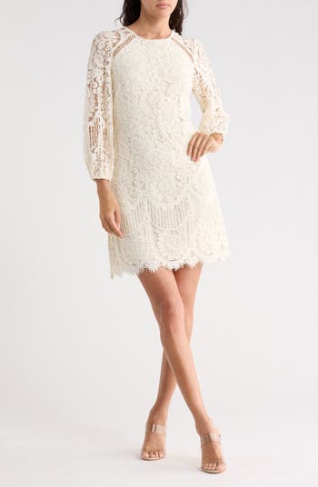 Lovely lace overlays this bloused-sleeve dress that perfectly balances the line of simple and sweet.