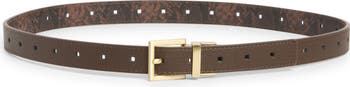 A gleaming square buckle adds a polished finish to this sleek faux leather belt that reverses from brown to a snakeskin print for easy versatility.