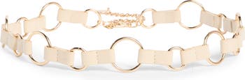 Gleaming round rings attached with faux leather straps create a statement belt that'll instantly elevates any look.