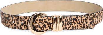 Highlight your look with this wide faux leather belt finished with a gleaming rounded buckle and double keepers.