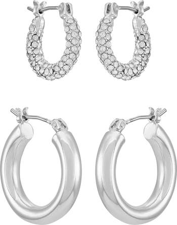 Enhance your ear stack with this set of two hoops that feature one polished and one adorned with crystals.