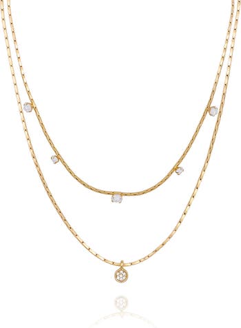 Bright-white crystals amplify the shimmer and shine of a duo of chain necklaces that look great stacked together or can be worn solo for a minimal statement.