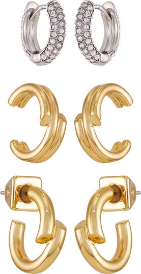 Refresh your jewelry selection with this trio of assorted earrings that come with two hoops and a pair of cuffs to easily customize your lobe stack.