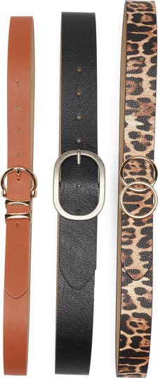 Update your look with this set of eye-catching belts featuring a mix of strap and buckle finishes to compliment any wardrobe.