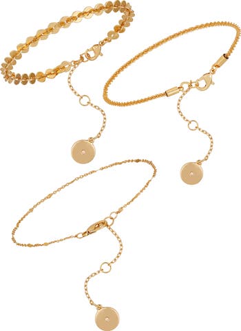 Gleaming discs and textured links enhance the shine of this assorted bracelet set that you can mix and stack for a personalized look.