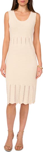 Sleeveless Scallop Hem Pointelle Cotton Sweater Dress