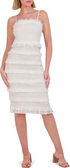 Sweeten the occasion in this smocked dress designed with fanciful, frilly lace trim.